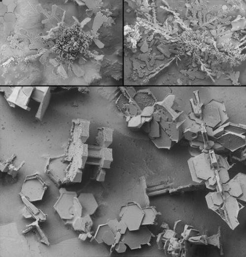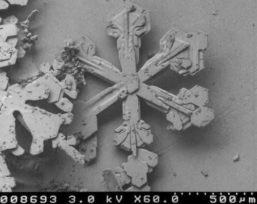 Фанстастическая структура снежинок при большом увеличении. Ученые из исследовательского центра в Мериленде сделали снимки снежинок под электронным микроскопом LT-SEM