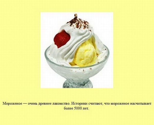 «Мороженное как лакомство известно уже 5000 лет». Когда был Ледниковый период, то любое лакомство было мороженное…