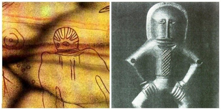 Большое количество рисунков и статуэток разного возраста, найденных по всему миру, трактуют как изображения космонавтов, одетых в скафандры или герметичные шлемы. Можно, конечно, списать все на фантазию художника. Однако сходство иногда бывает весьма удивительным.