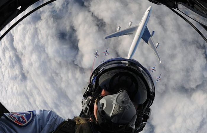 Французский пилот сделал селфи во время сопровождения последнего Boeing 747 компании Air France