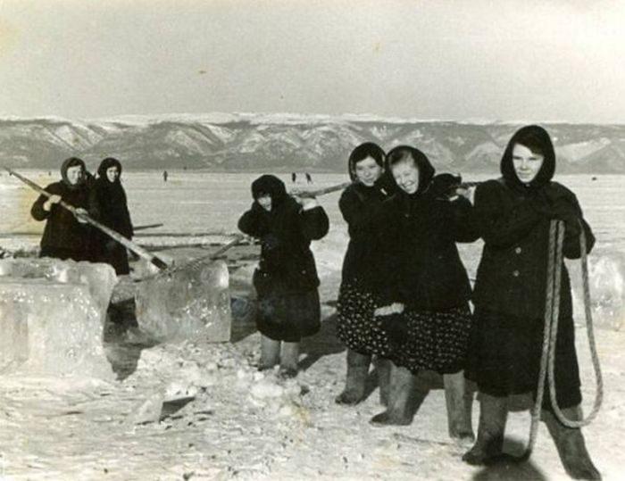 Заготовка льда для рыбзавода, 1950–е годы, Хужир, Байкал