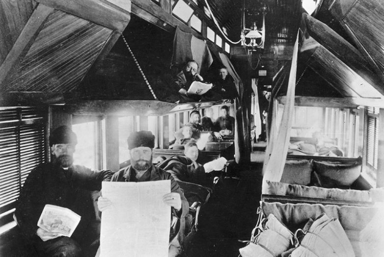Пассажиры туристического вагона Канадской Тихоокеанской железной дороги. Канада, 1875 год: