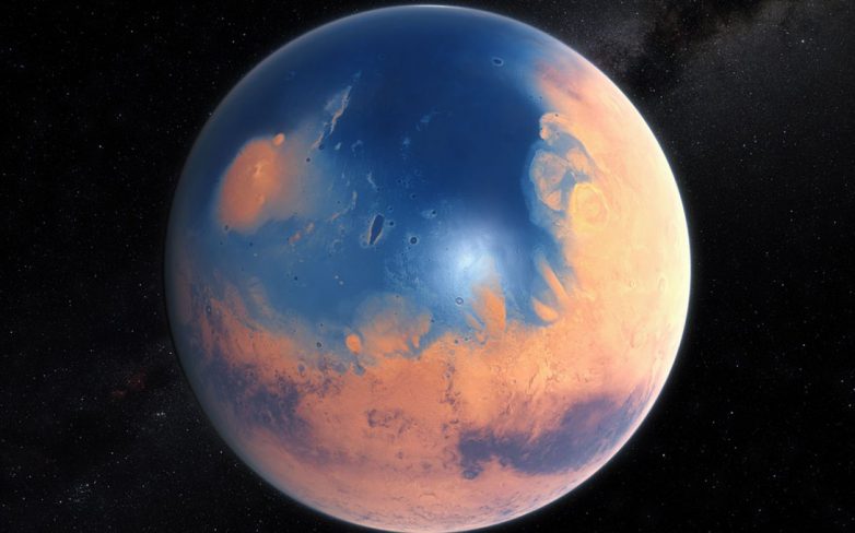 Группа ученых доказала, что по крайней мере одна пятая красной планеты была полностью покрыта самой настоящей H20. Все признаки жизни, которые наверняка существовали в океане, могут быть найдены глубоко в песках Марса. Интересно, что жизнь на Земле зародилась примерно в тот период, когда на Марсе пересохли последние озера.