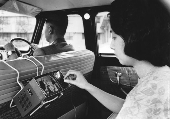 Женщина смотрит новый портативный телевизор SONY, 1963 год, Токио, Япония