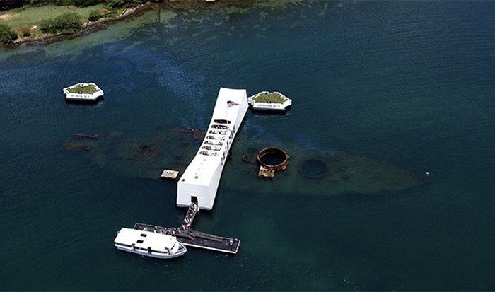 Из машинного отделения линкора USS Arizona, который был потоплен в 1941 году в Перл-Харборе, по сей день просачивается топливо, образуя пятно на поверхности воды над кораблем.