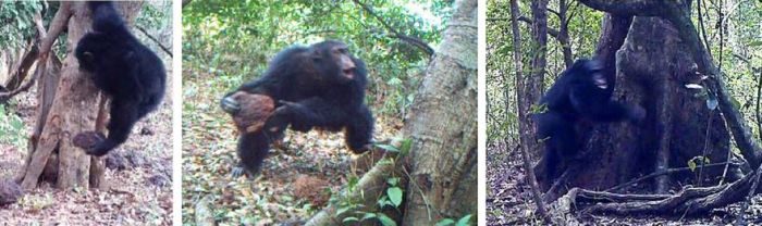Видеокамеры зафиксировали, как это происходит. Старые самцы подходят к «святому» месту, с громким криком кидают в пустой ствол дерева очередной камень, и с благоговением удаляются. Что самое поразительное, после того, как они положат камень, шимпанзе несколько секунд раскачиваются из стороны в сторону, делая совершенно несвойственные им движения. Такое впечатление, что они молятся или медитируют. Об этом пишет журнал Scientific Reports.