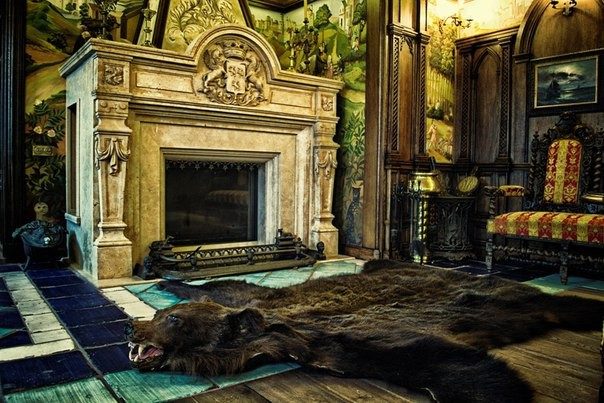 Шкуру медведя Никасу подарил губернатор Кемеровской области Аман Тулеев, а камин был привезен тоже из французского из замка XVI века, принадлежавшего некогда кузену французского короля Луи Великолепного.