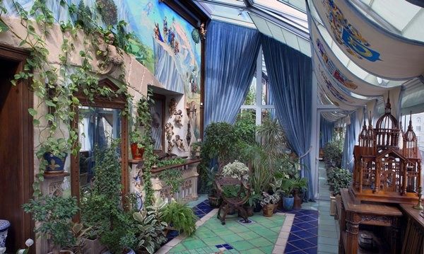 В зимнем саду на балконе всегда поддерживается одинаковая температура на уровне 22 градусов. Зимний сад и комнаты разделяют двери с витражами, выполненными по старинным технологиям в Париже и часть в Академии художеств Санкт-Петербурга.