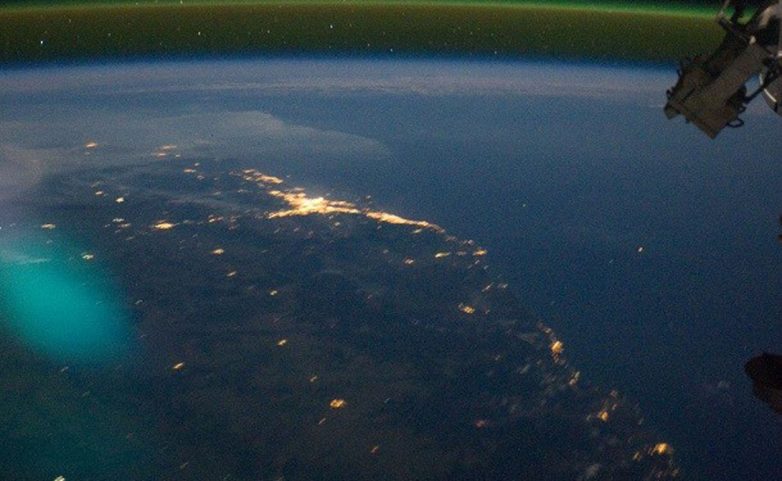 Уникальное явление, которое можно увидеть только из космоса. Свечение появляется из высвобождения энергии атомов и молекул высоко в атмосфере. Выпуская свою энергию, полученную за день от солнца, молекулы могут производить видимый свет — кислород, к примеру, дает зеленый.