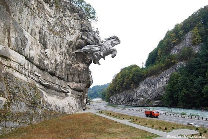 «Георгий Победоносец выскакивает из скалы» – это уникальный памятник, расположенный в городе Владикавказ.