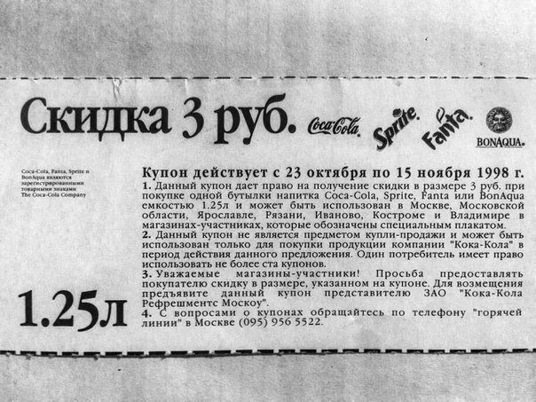Купон на скидку на Кока-Колу 1998 года.