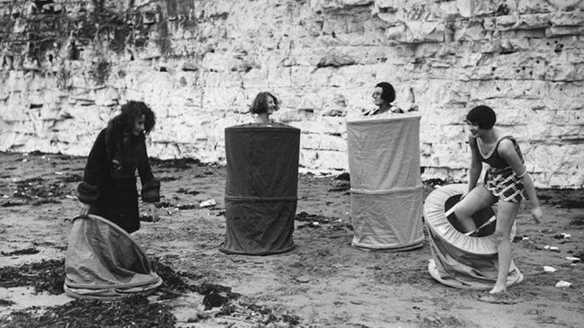 Девушки переодеваются на общественном пляже, 1929