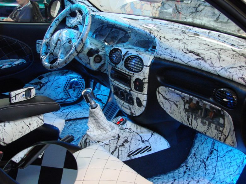 Если хочется чего-то нового, но вкусы постоянно меняются — можно просто заклеить салон винилом. Надоест — поменяет на новый.