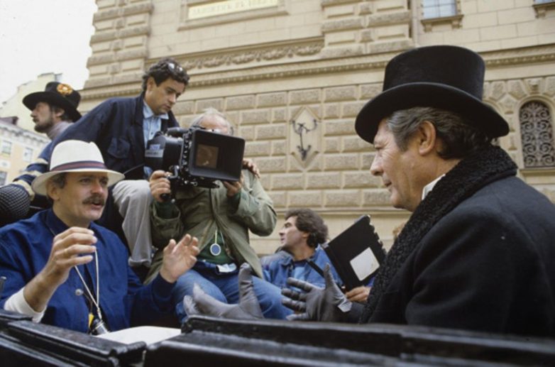 Никита Михалков и Марчелло Мастроянни на съемках фильма «Очи чёрные», 1980-е.