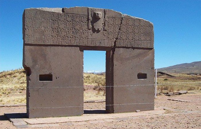 БоливияПо мнению многих людей, «Врата Солнца» в Боливии являются порталом к земле богов. Город Тиауанако считается одним из самых важных мест древней Америки, поскольку легенды утверждают, что бог Солнца Виракоча появился именно в Тиауанако и выбрал это место для создания человеческой расы. Вратам, вырезанным из цельного блока камня, как считается, исполнилось 14 000 лет. На шлюзе изображены «человеческие существа в прямоугольных касках».