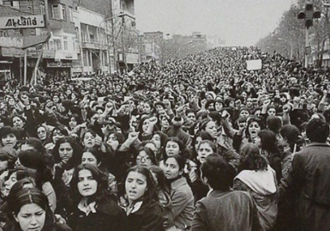 Женщины, возражающие принудительному ношению хиджаба в Иране спустя дни после исламской революции, 1979.