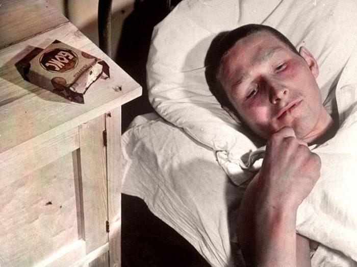 Немецкий солдат Карл Хейман (Karl Heimann) в советском госпитале в Москве на излечении после ранения на фронте.