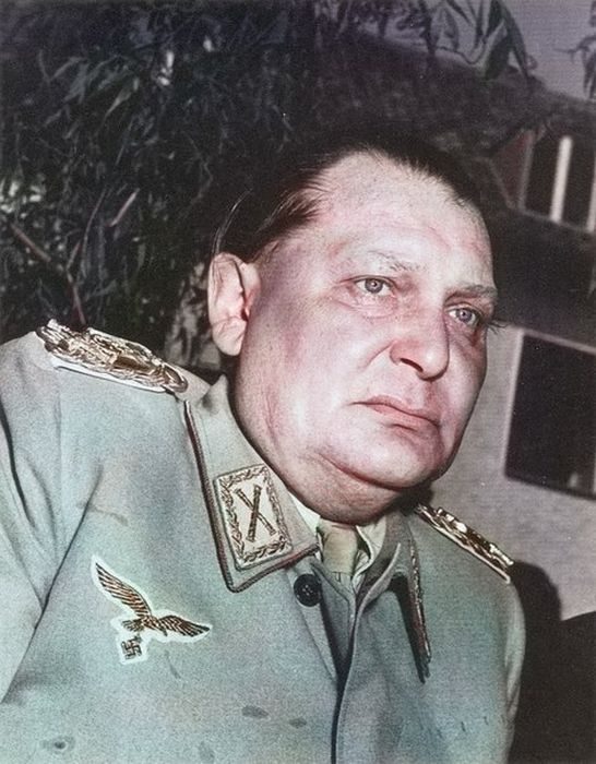 Арестованный рейхсмаршал Герман Геринг отвечает на вопросы журналистов на пресс-конференции в Аугсбурге (Augsburg), Германия. На встрече присутствовало более 50 представителей прессы из стран антигитлеровской коалиции.
