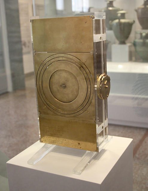 Механизм, состоящий из 37 бронзовых шестерен в деревянном контейнере, размером всего с обувную коробку, был весьма прогрессивным для своего времени. С помощью вращения ручек шестерни перемещались, вращая серию циферблатов и колец, на которых имеются надписи, а также обозначения греческих знаков зодиака и египетских календарных дней. Подобные астрономические часы не появлялись в Европе до 14-го века.