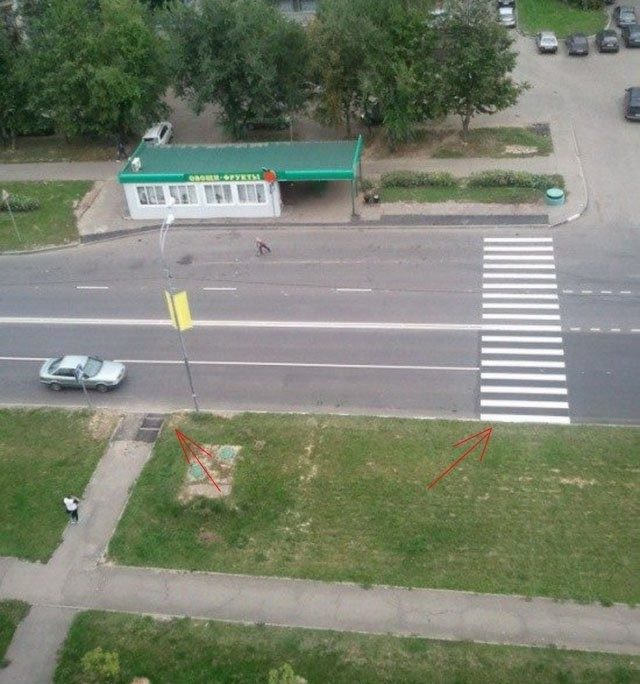 Всё по-нашему, особенно линия границы тротуара…