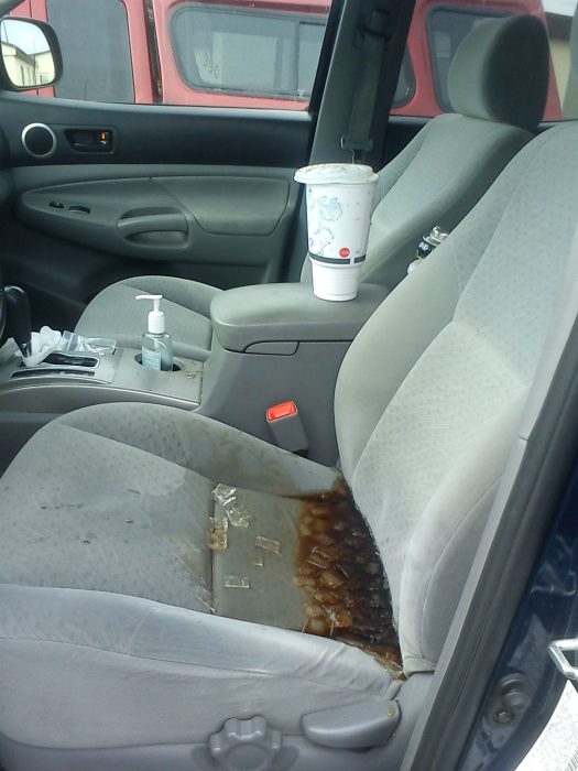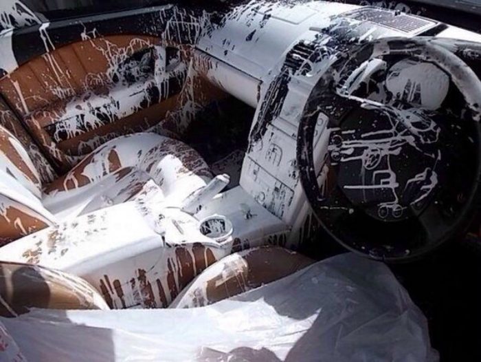 Нет, самое страшное — пролитая в салоне авто белая акриловая краска.)