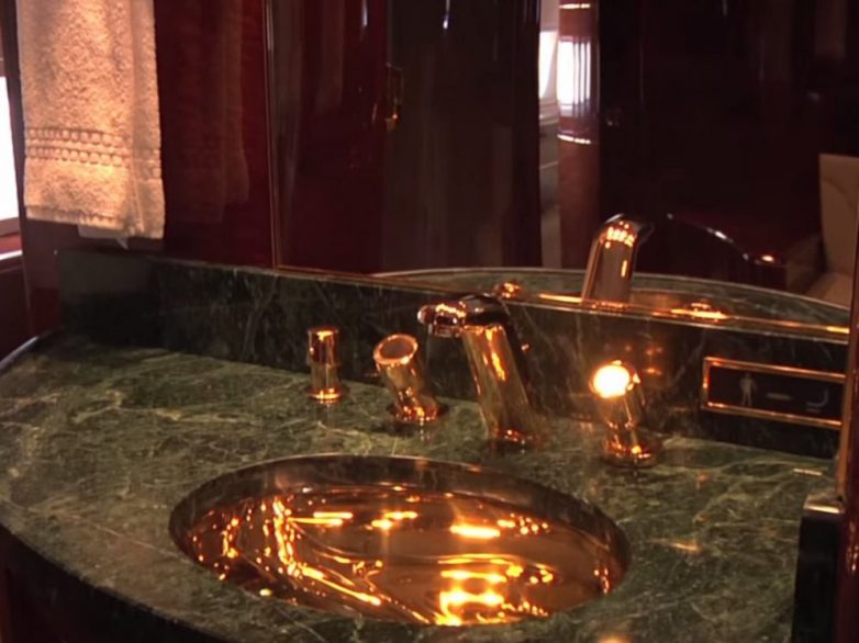 В самолете почти все покрыто 24-картаным золотом, даже поясные ремни. В том числе и ремни Трампа.