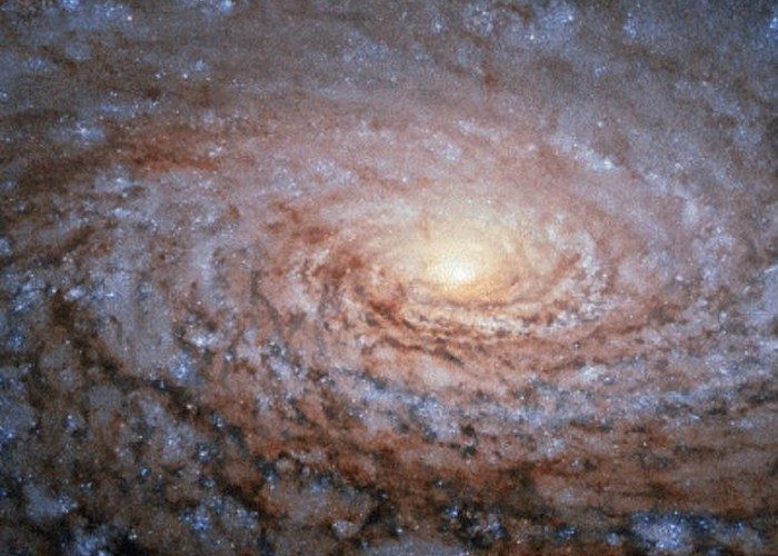 Галактика Подсолнух — одна из самых красивых космических структур, известных человеку, во Вселенной. Ее размашистые спиральные рукава состоят из новых сине-белых гигантских звезд.