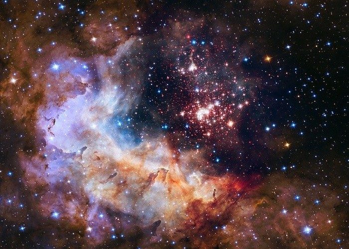 Снимок скопления Вестерлунд 2 был сделан в инфракрасном и видимом свете. Он был опубликован в честь 25-летия нахождения телескопа Хаббл на орбите Земли.