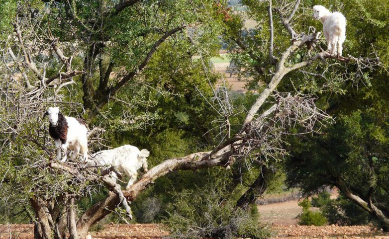Марокканские козы научились лазать по деревьям, чтобы иметь возможность лакомиться вкусными плодами аргании. Местные фермеры давно привыкли к такой странной особенности, а вот туристы стекаются сюда толпами.