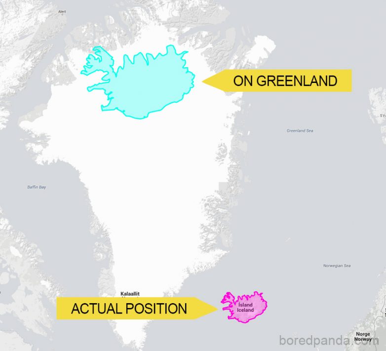 Крошечная Исландия в сравнении со своей гигантской соседкой Гренландией