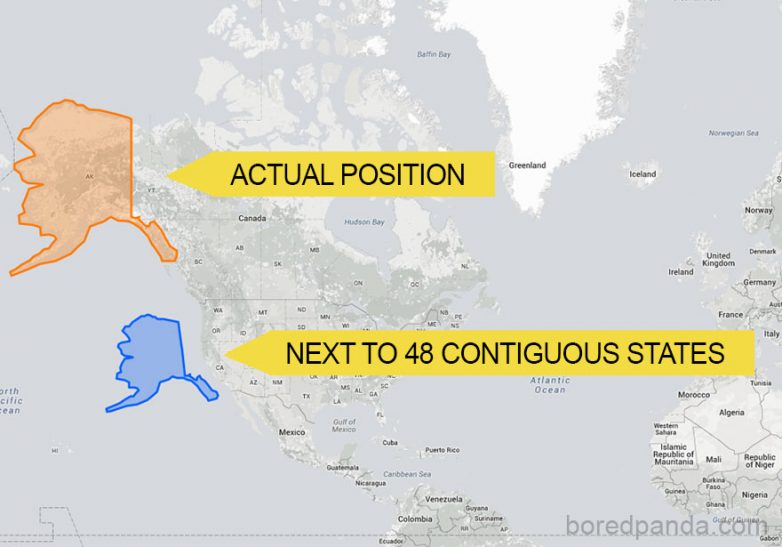 Аляска уже не кажется такой большой, если ее сравнить с континентальной территорией США