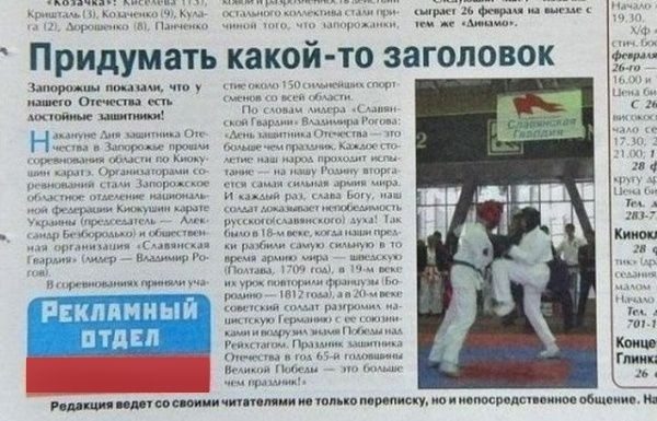 Насчет заголовка в газете. Редактор пометил на распечатке примечание для автора. А верстальщик, как обычно делается. набрал текст и не читая поставил. нередкая ошибка. между прочим.