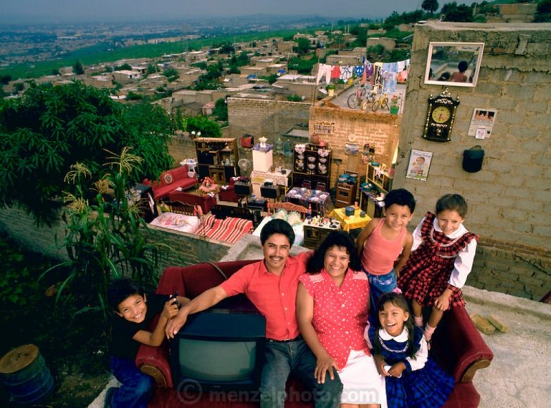 Известный фотограф Питер Мензель (menzelphoto.com), который исследует жизнь людей по всему миру, работал над фотопроектом «Материальный мир. Глобальный семейный портрет» в начале 90-х годов. Питер объездил 30 стран мира и, основываясь на данных ЮНЕСКО, искал среднестатистические семьи — по размеру жилья, доходов и составу. Он просил вынести из дома все, чем владеет семья, и рассказать, что они считают самым ценным в доме.