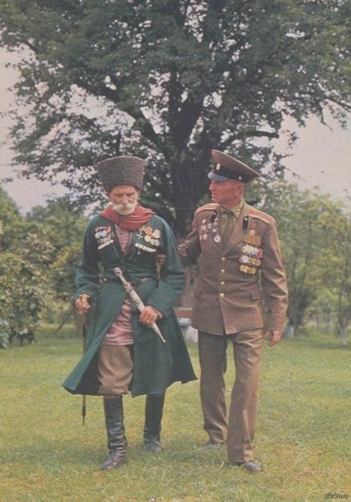 Отец и сын. Кавалер Георгиевского креста Теймураз Ванача (112 лет) и полный кавалер Ордена Славы Иван Ванача. Уроженцы села Лыхны Абхазии. 1982 г.