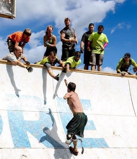 Совместными усилиями многих людей этот человек взмыл над толпой, несмотря ни на что.