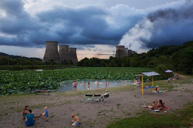 Школьницы на мотоциклах и цветущая речка возле ТЭЦ.