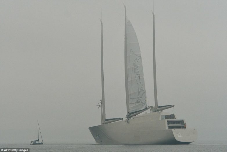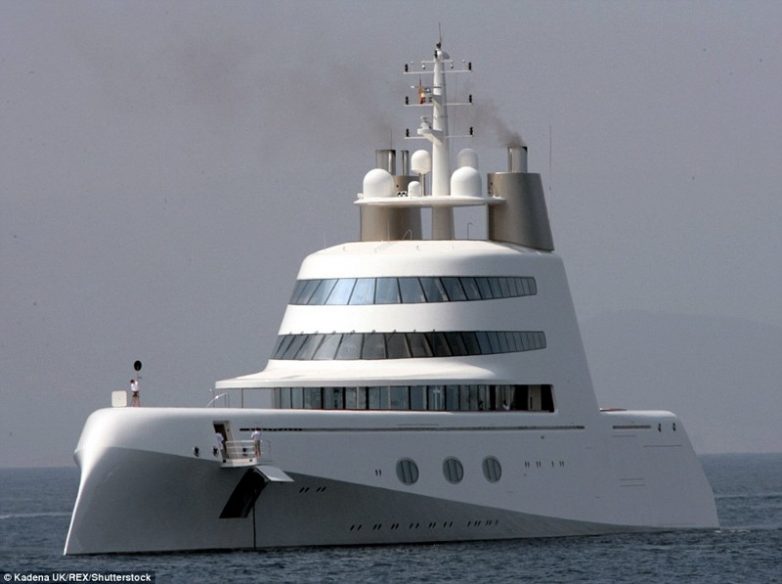 На фоне величественной «яхты А» другие суда кажутся карликами.