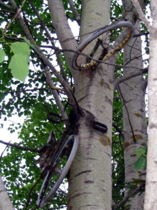 Природа устроена так, что практически не замечает никаких преград на своем пути. Ярким тому подтверждением являются эти деревья, которые проросли сквозь различные предметы.