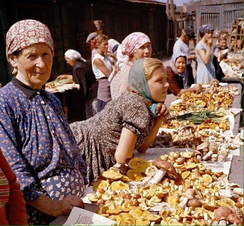 Продажа грибов на Даниловском рынке, Москва, 1959 г.