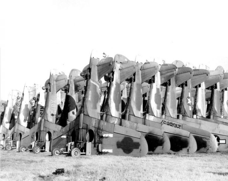Интересный метод хранения истребителей P-40 Warhawk на заводе Curtiss. Похоже, перед утилизацией.