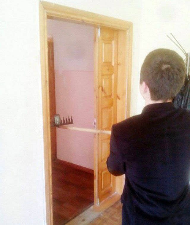 на первом фото цепочку забыли повесить, а дверь то открыта…