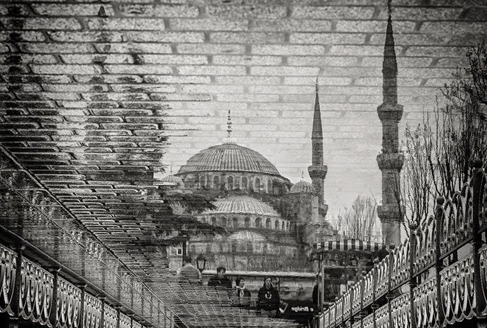 Идеальная оптическая иллюзия — Голубая мечеть, отразившаяся в брусчатке моста