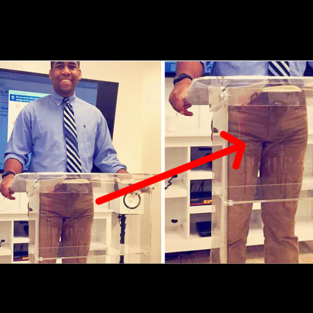 Фух, а мы-то испугались… а это всего-навсего отражение стула в пластиковой кафедре