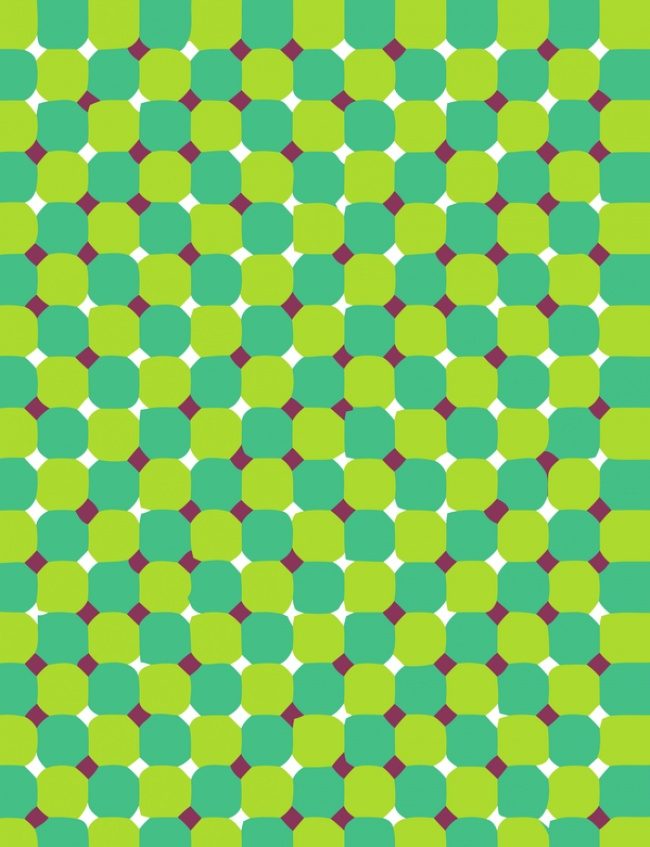 Сконцентрируйте взгляд на зеленой точке посередине. Через некоторое время желтые точки исчезнут одна за другой. На самом деле они остаются на месте, просто статичные кадры исчезают из нашего сознания, если они окружены постоянно меняющимися образами.