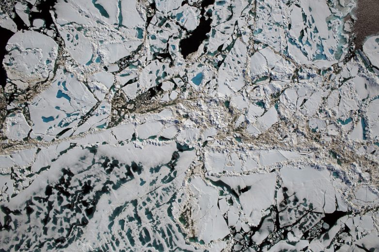 1. Морские льдины, растаявшие озера и открытое море с высоты 450 метров, 16 июля (NASA/Goddard/Operation IceBridge)