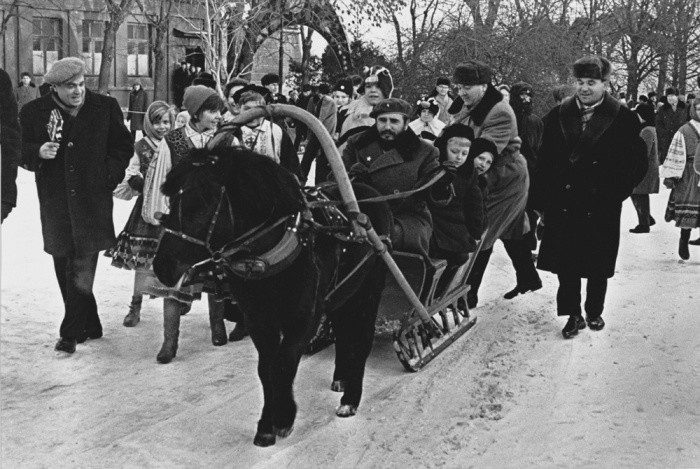 Фидель Кастро катает советских детей по улицам Москвы, 14 января 1964 года, СССР