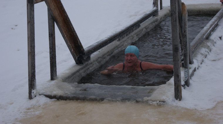 А вот отдельные жители города Урай продолжают свои купания в проруби в реке Конда. Местные «моржи» привыкли окунаться дважды в день, утром и вечером, и говорят, что и 50-градусные морозы им не помеха. Разве что каждый раз приходится расчищать прорубь: она уже за пять минут схватывается тоненькой корочкой льда.