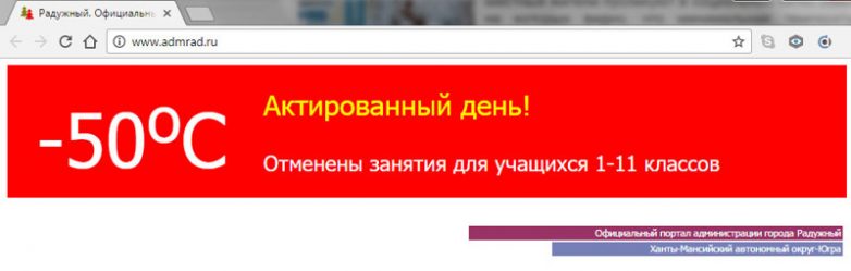 В городе Радужный намерили минус 50 и распустили школьников по домам. А метеорологи вспоминают, что абсолютный декабрьский минимум температуры воздуха в Ханты-Мансийске был зарегистрирован 9 декабря 1968 года, он составил -49°С. А на территории ХМАО, в Казыме, столбик термометра вчера зафиксировали на отметке -58 °С. Сегодня, похоже, поставлен новый рекорд: на Большом Ольховском месторождении в Белоярском районе отмечена температура в минус 62 градуса!
