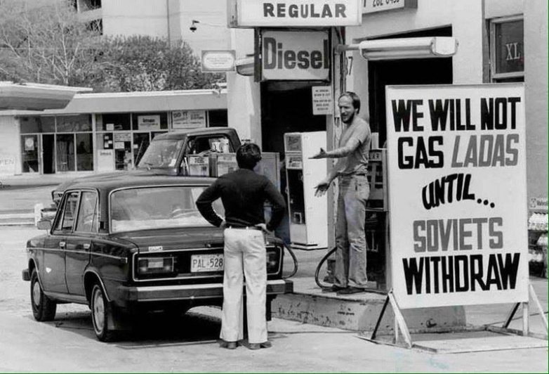 «Лада не обслуживается, пока Советы не уйдут из Афганистана» Канада, Торонто, 1980-е гг.