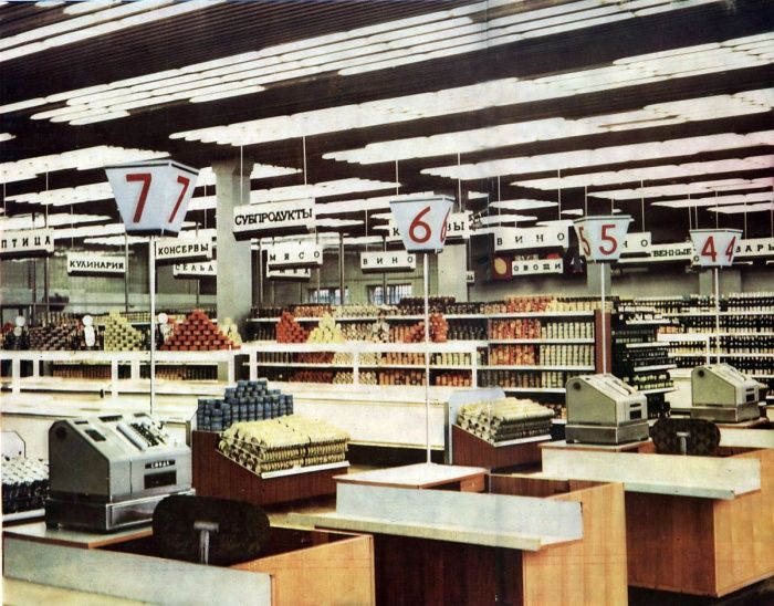 Интерьер образцового советского универсама, 1980–е годы, СССР